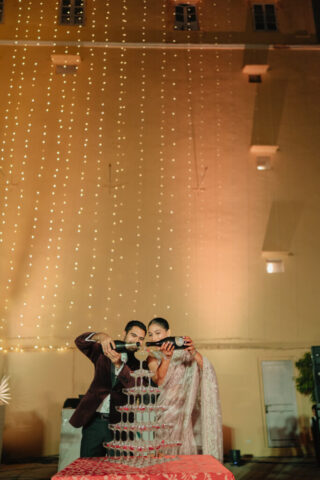 The couple opened the celebration with a stunning champagne tower pour, a moment full of sparkle, cheers, and celebration.